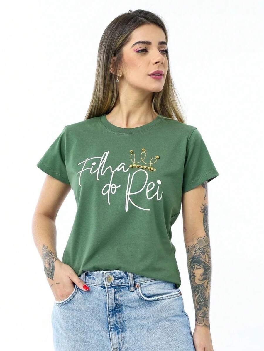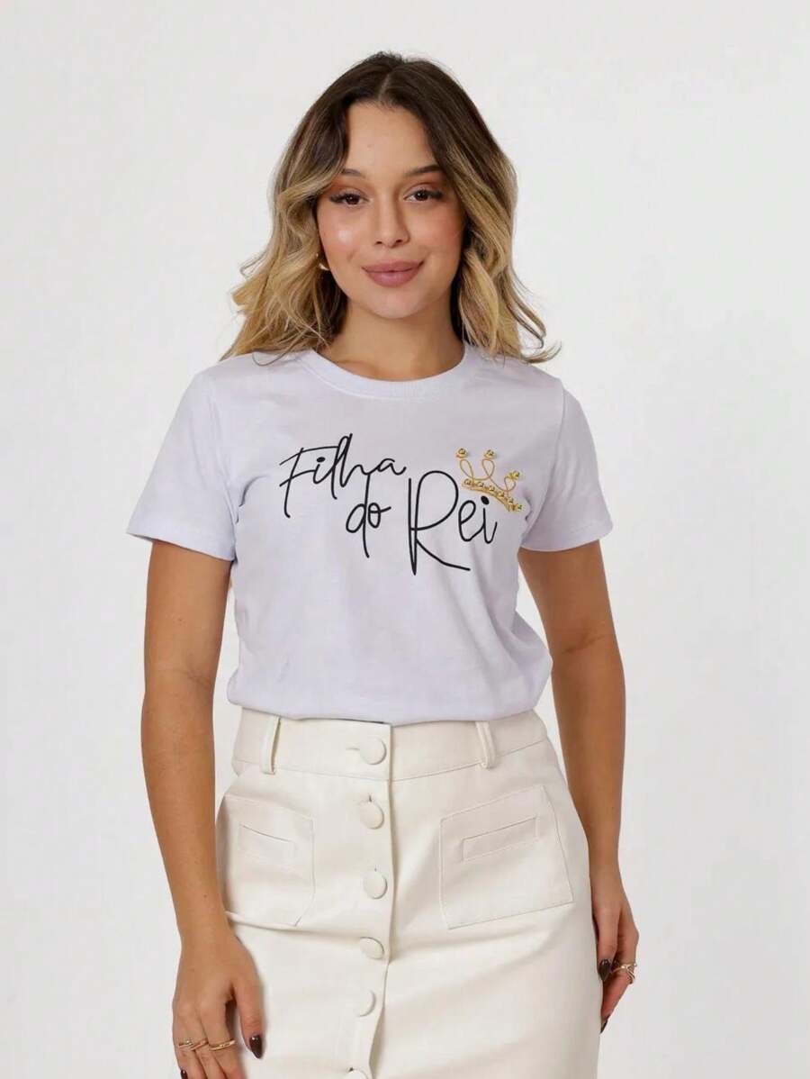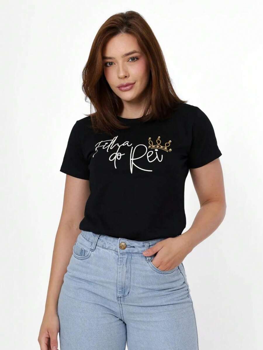 Camiseta feminina em algodão premium que combina conforto e propósito. O design "Filha do Rei" celebra a identidade espiritual com elegância, enquanto os detalhes em pérolas adicionam sofisticação ao visual cotidiano. Tecido de alta qualidade garante durabilidade e maciez, mantendo a forma após múltiplas lavagens. Perfeita para quem deseja expressar sua fé através da moda com estilo refinado e autêntico.